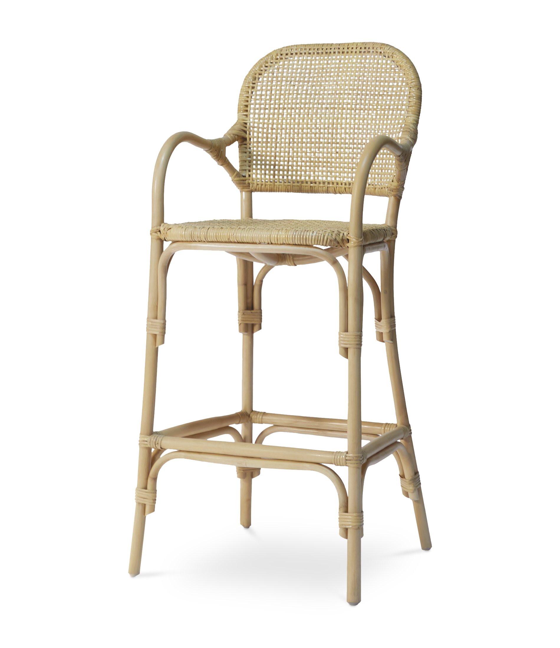 Boulevard stool with arms made of natural rattan